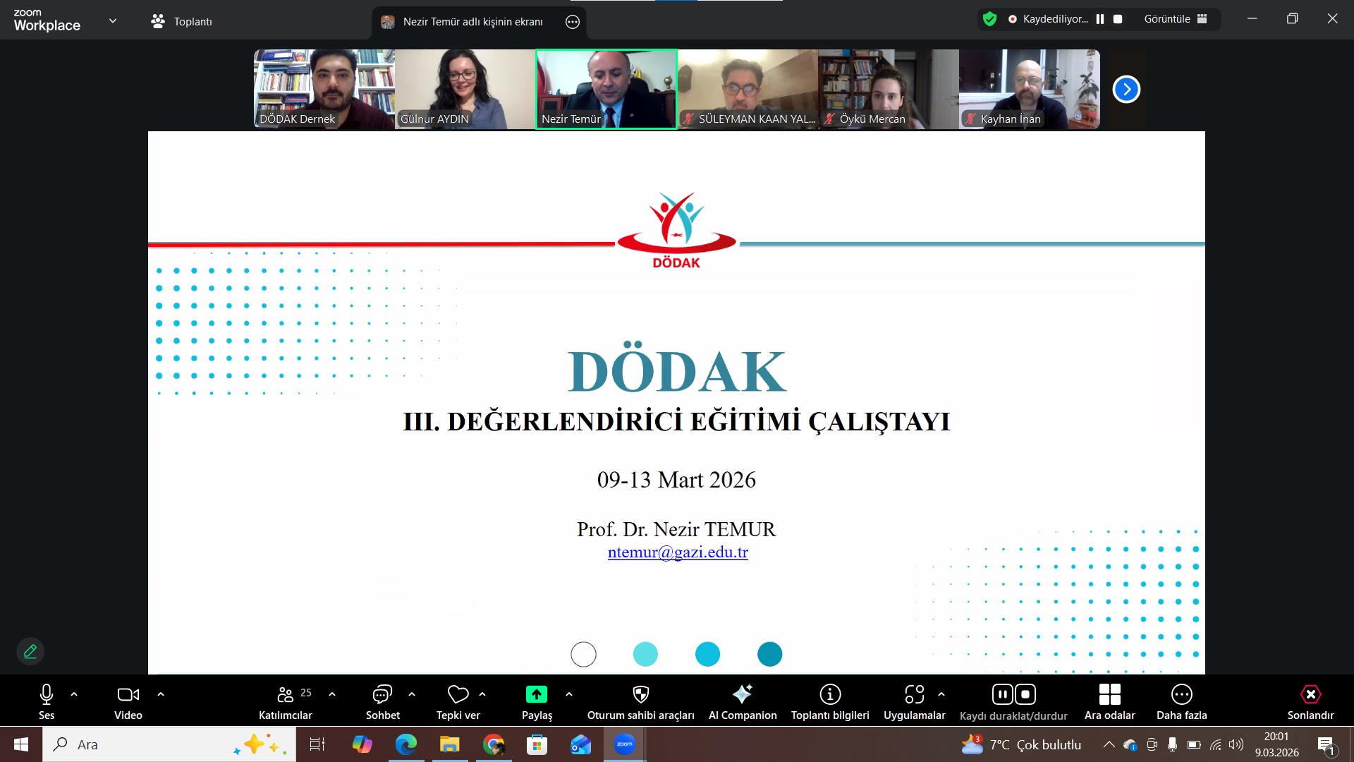 Dil Öğrenim/Hazırlık Merkezleri Değerlendirme ve Akreditasyon Derneği (DÖDAK) tarafından üçüncüsü düzenlenen Değerlendirici Eğitimi Çalıştayı 09.03.2026 tarihinde başladı. Dört gün sürecek olan çalıştayın ilk gününde açış konuşmasını DÖDAK Yönetim Kurulu Başkanı Prof. Dr. Nezir Temur gerçekleştirdi. Temur konuşmasında, DÖDAK’ın yabancılara Türkçe öğretimi alanında kalite güvencesi kültürünün yerleşmesine sunduğu katkılara dikkat çekerek akreditasyon süreçlerinin yalnızca kurumsal bir değerlendirme mekanizması olmadığını; aynı zamanda öğretim merkezlerinin akademik, idari ve pedagojik kapasitelerini geliştiren önemli bir rehber niteliği taşıdığını vurguladı. Yabancılara Türkçe öğretiminin uluslararası ölçekte giderek daha fazla önem kazandığını belirten Temur, bu süreçte DÖDAK’ın yürüttüğü çalışmaların alanın standartlarının oluşmasına ve sürdürülebilir kalite anlayışının yaygınlaşmasına önemli katkılar sağladığını ifade etti.
