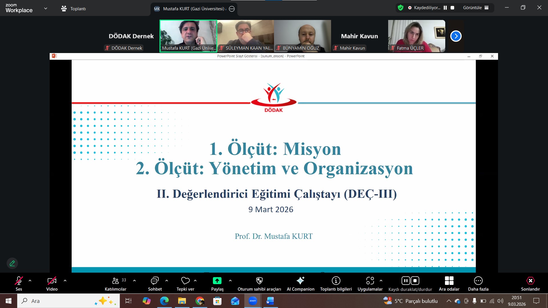 Açış konuşmasının ardından DÖDAK Genel Sekreteri Prof. Dr. Mustafa Kurt, Misyon ile Yönetim ve Organizasyon ölçütlerine ilişkin kapsamlı bir sunum gerçekleştirdi. Kurt, kurumların misyonlarını açık, ölçülebilir ve sürdürülebilir hedefler doğrultusunda yapılandırmalarının akreditasyon süreçlerinde belirleyici bir unsur olduğuna değinirken, yönetim ve organizasyon yapısının ise kalite güvencesi sisteminin etkin biçimde işletilmesinde kritik bir rol oynadığını belirtti. Sunumda ayrıca kurumsal yönetim mekanizmalarının şeffaflık, katılımcılık ve hesap verebilirlik ilkeleri doğrultusunda yapılandırılmasının, eğitim-öğretim faaliyetlerinin niteliğini doğrudan etkileyen temel faktörlerden biri olduğu vurgulandı.